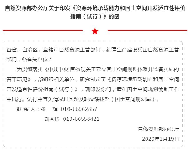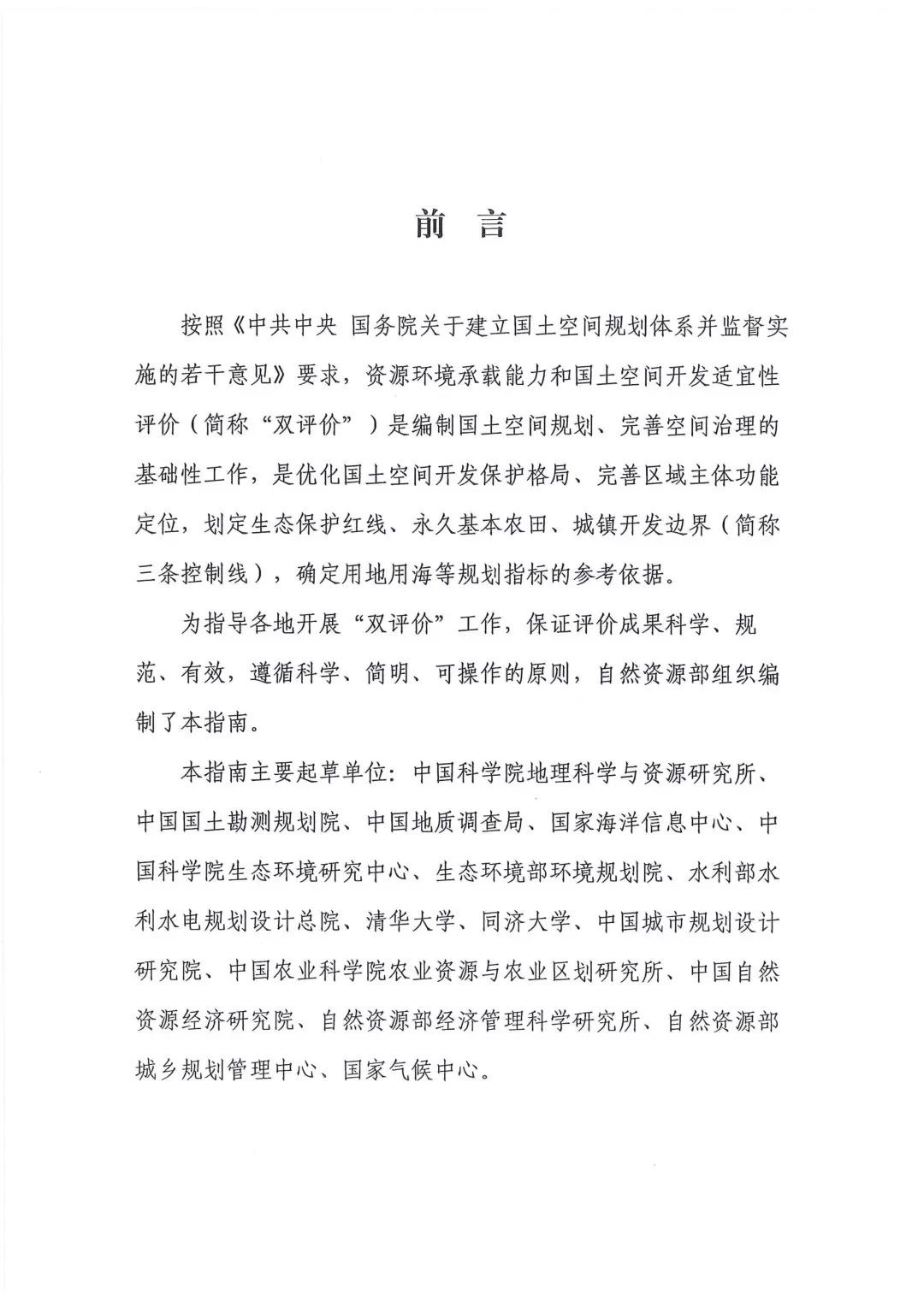 双评价!自然资源部发布《资源环境承载能力和国土空间开发适宜性评价指南(试行)》